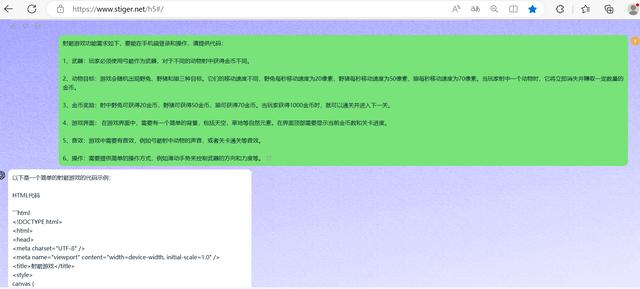 向ChatGPT提问,需要做一个简单的射击游戏: