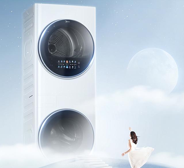 首先介绍的是最近刚上市的美的清风明月一体式洗烘套装:10KG变频滚筒洗衣机+10KG热泵烘干机家用MGH20VE5。采用一体式外观设计,两个机身全极简黑白配色,而且没有多余的按钮,整机浑然一体。造型结构上也采用了一体式成型无支架和一体排水排线设计,两个设备可直接上下重叠放置,无需隔板,安装放置非常省心。