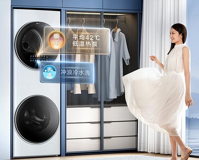 洗衣机采用变频电机高效节能,洗净比为1.1,一级能效,容量为10KG大容量。采用蓝鲸内筒设计,减少尖角磨损,柔洗更呵护衣物;另外支持微泡精洗,去除顽固污渍提升衣物洁净度。烘干机为热泵式烘干,10KG大容量,循环大风量加智能正反转均匀翻转烘,可实现平均42℃低温柔烘,智能判定衣物干湿,干得恰到好处,还原衣物亲肤质感。