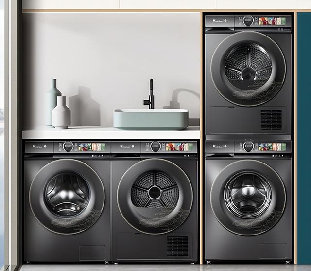 如果你想要左右横放安装,那么就可以看看小天鹅纤彩系列洗烘套装,10KG滚筒洗衣机TG100-SC58+10KG烘干机TH100H-SC58。采用各自独立的触控屏设计,安装方式更多样化,左右横放、上下叠放都可以。纯黑机身,机盖点缀了祥云纹理,可视化国风背景图的臻彩大屏,还针对汉服提供专业洗涤及烘干程序,从外观到功能都国潮风满满。