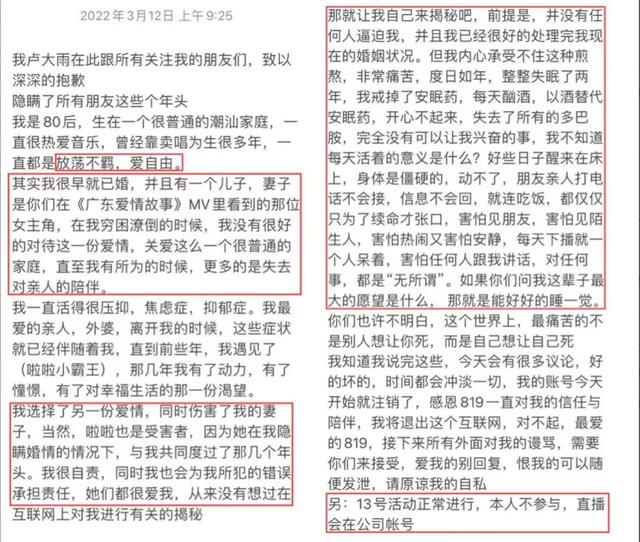 虽然他发文忏悔,3月12日他又用退网的方式向公众和妻子道歉,