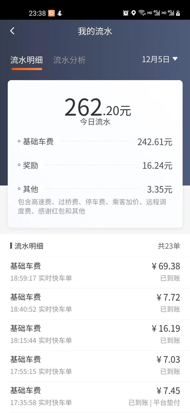 今天周末不用上班,跑了一天的滴滴。早晨9点多先到医院做了体检,报考网约车驾驶员证需要用到。体检完10点多了,体检报告需要下午15点后才能出来,想了想开始接单吧。10点50接的第一单,一直跑到下午15点多到医院拿了体检报告,非常好一切正常。马上去驾校报名网约车驾驶员,导航一下10公里,这样开过去不甘心啊[捂脸],滴滴设置顺路单看看能不能顺上,等了2分钟还真顺上了[呲牙]。马不停蹄送完乘客赶到驾校快17点了,顺利报上了名。等待考试通知就行了。弄完这些接着接单,到晚上20点左右流水跑了260元。除去油钱基本到手就是180元左右。挺好的,比在家呆着强吧。马上40岁的人了,生活压力也挺大。能挣点就挣点吧。今天非常充实。顺利体检完报上了名还没耽误出车赚钱。