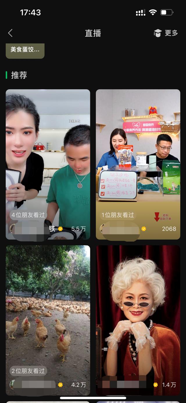 关注一些账号后,视频号直播广场会推荐更多类似账号。