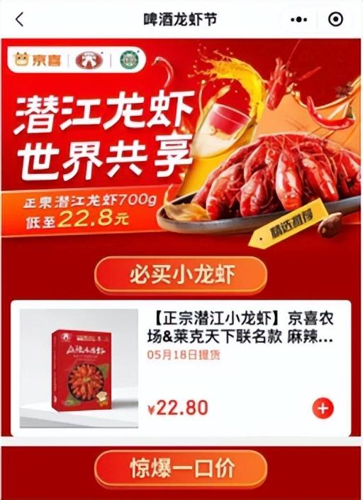 为了让消费者吃得放心、省心,京喜充分发挥自身产地直采的优势,打造产地直采项目——京喜农场与素有“中国小龙虾之乡”美誉的潜江打造联名款调味小龙虾,与行业龙头企业——湖北小龙虾产业控股集团进行深度联名合作,推出联名款小龙虾!