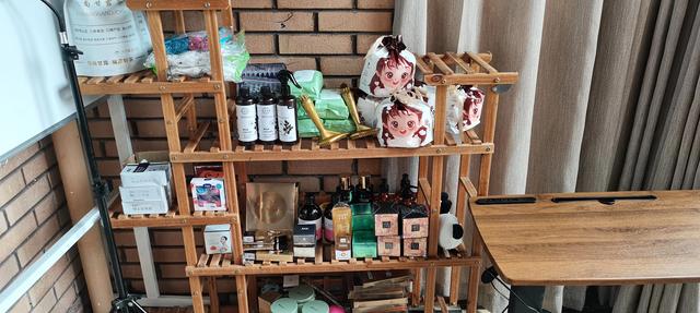 4.下午到库房把买的样品拿到家里面,并且把阳台收拾出来把产品都放到架子上。