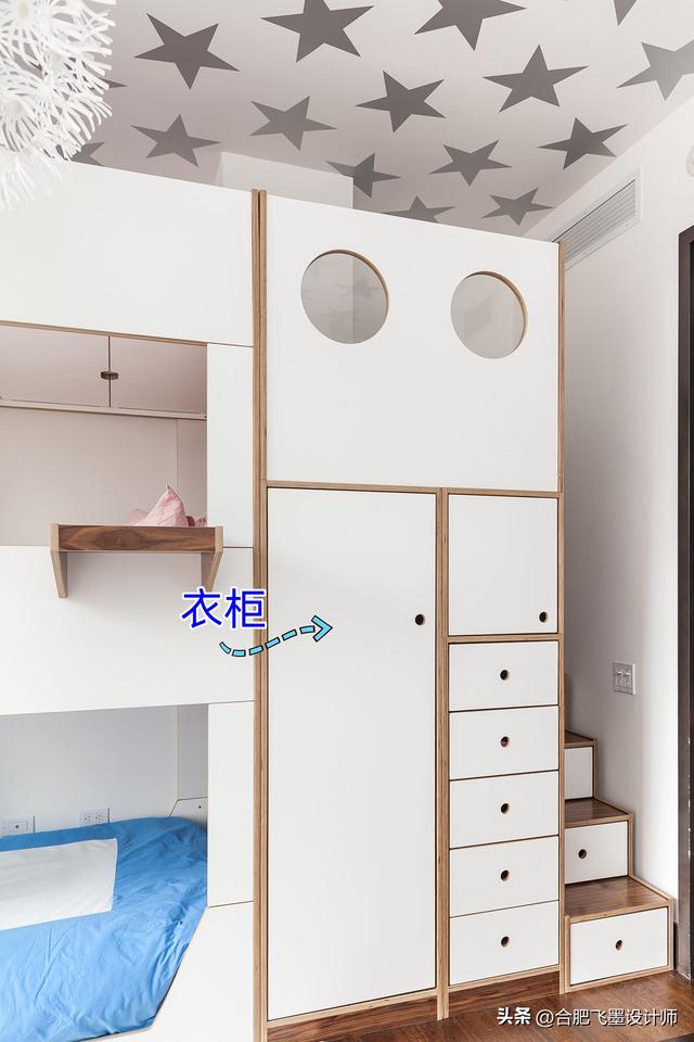 就连天花板也是贴了星星壁纸,为孩子营造一个充满童趣的环境。