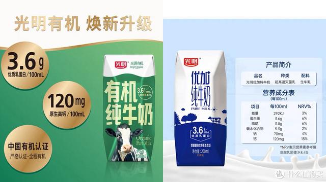 这边就主要推荐常买的两款,光明有机和光明优加纯牛奶,都是200ml的规格,3.6g乳蛋白,不论是口感还是营养价值,都还是不错的,老牌厂家,品质也比较稳。