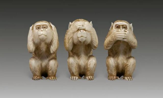 在古人眼中,猴不仅通“侯”而借以祈福,也因其在某种程度上与人相像的灵长类独特秉性,而被哲学家们赋予了某些礼教的色彩。后人把孔子所说的“非礼勿视,非礼勿听,非礼勿言,非礼勿动”简化为“三不主义”,并以猴子形象予以具象化。在传世的石雕中,三只猴子分别双手捂口、捂耳、捂眼,形象生动。在生肖猴的形象中,“三不猴”可谓是移风易俗的典范,可以看作是儒家文化的世俗化。