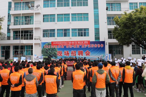 2022年农村劳动力“培训+就业”暨“春风行动”招聘会现场在凤庆县职教中心举行。(凤庆县委农办供图)