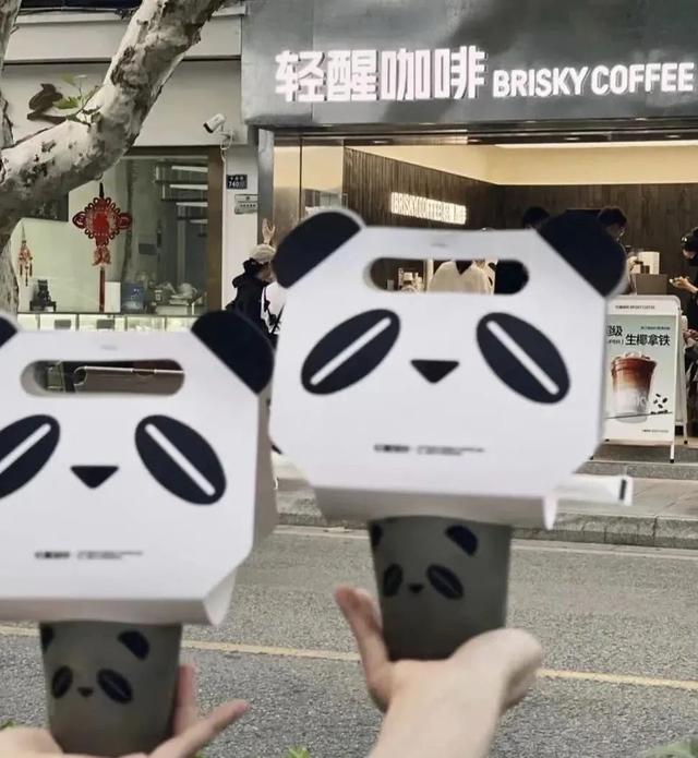 于是,轻醒大胆启用国民动物熊猫,也正符合本身“中国咖啡”的调性。并对黑白色熊猫IP做了设计优化。
