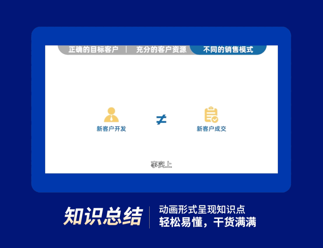 提供与课程内容配套的销售实战工具,除了在线课程的学习,更能贴合学员业务实践,让企业和学员边学遍练,实现学习效果的更高层次转化。