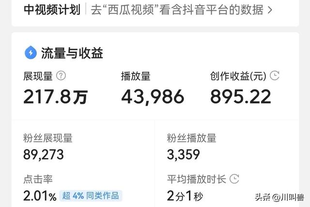 这里就拿我利用业余时间做中视频的数据来说,一条三四分钟的视频,有八九百到两三千的创作收益,这样的视频只要一个月出三条,就顶得上很多人一个月的工资了。