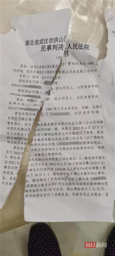 家住洪山区世茂林屿岸小区的樊先生因为房屋漏水问题拒交了两年多的物业费,他和小区物业还因物业费的问题两次闹上了法庭。第二场官司打完后几个月,樊先生发现物业竟把判决书贴在了很多楼栋的电梯里。张贴的判决书中对樊先生的个人信息抹除得并不彻底,这让樊先生心中怏怏不平。对此有律师表示,物业此举涉嫌侵犯隐私。