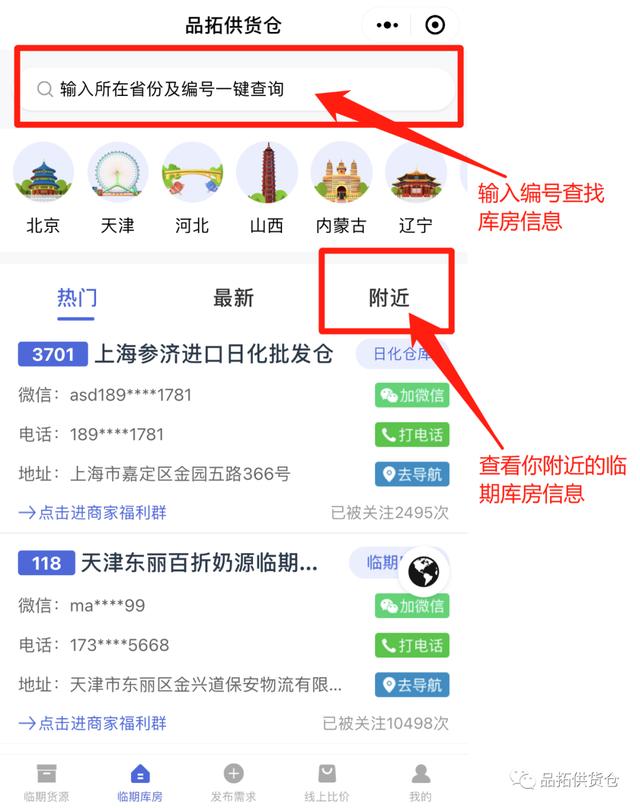 也可以点击附近查看你附近的库房信息,可以直接找到距离你最近的库房可以实地去库房考察进货。